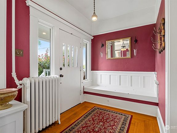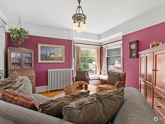 This is a unique opportunity to own a true Craftsman home with so much of its original details from the leaded glass windows (others have been replaced), 10' ceilings, picture rail, doors, built-ins and fir floors. Many of the light fixtures are original as well as the hardware. The dining room has large south facing windows and a built-in hutch. There are 2 bedrooms on the main floor, and another upstairs with a sitting room that looks out toward the amazing sunsets. The bonus is the oasis fully fenced back yard with a water feature with a patio and another larger patio all surrounded by incredible landscaping. There is a new gas boiler for the original radiators which heats the home in the unfinished basement and single car garage.