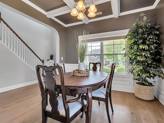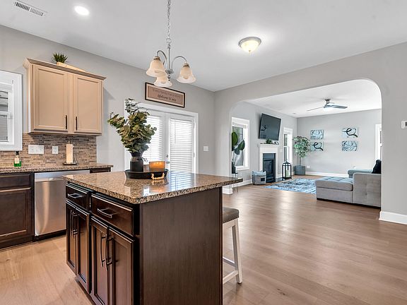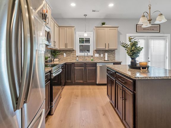 Discover this charming home featuring an inviting front porch and a covered rear porch. Built in 2015 and upgraded in 2023, it showcases extensive LVT flooring on the first floor. The formal dining room impresses with a coffered ceiling and elegant trim. The kitchen is equipped with granite countertops, a tile backsplash, stainless steel appliances, a walk-in pantry, an island, and a spacious breakfast area. A practical mudroom provides direct access from the garage. The master suite features a tray ceiling, garden tub, separate shower, and walk-in closet. Secondary bedrooms are generously sized. Situated in a quiet neighborhood, this home is conveniently located near major highways, restaurants, and plenty of shopping.