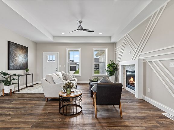 Don’t miss this beautiful new construction home!  3 bed, 2 bath, spacious and open kitchen and dining area, beautiful cabinets with waterfall quartz kitchen island, breakfast bar, large pantry and built in desk/work station. Large primary suite with walk-in closet and tiled shower. Living room offers volume trey ceiling, gas fireplace custom fireplace design and hard surface flooring. Additional amenities: white painted trim, quartz countertops throughout, LVP flooring, main level laundry, 3 stall garage, maintenance free deck, patio, and beautiful lot!  Confirm school districts. Taxes not fully assessed.