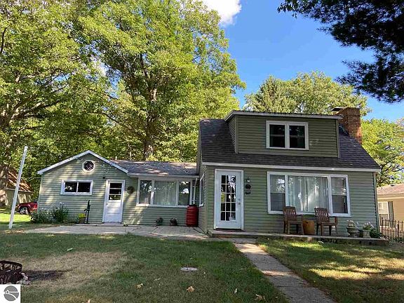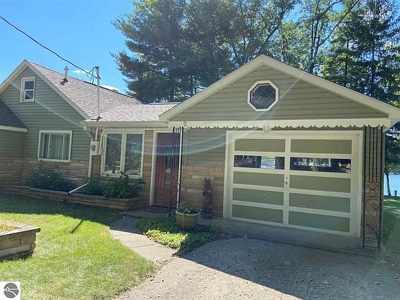 Beautiful location on the west end of all sports Crooked Lake. 50' of sandy bottom frontage. Gentle slope to the waters edge. This is an immaculate, 2 bedroom, 1.5 bath cottage. Original hardwood flooring in most rooms. Newer kitchen & bath. Large living room with wood burning fireplace. Dining room and family room. One bedroom down, and one up. Lots of large windows for plenty of lakefront views. Large brick patio and fire pit. Attached one car garage. This property also features a back lot (50x100) with another one car garage + storage shed.