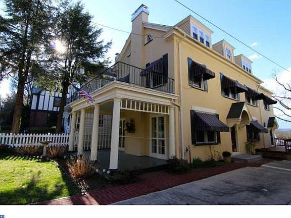 Old warm charm updated for today's lifestyle...this 5BR/3.5BA single is a Pottsville treasure. The exterior has dramatic curb appeal with its warm toned stucco, window awnings, architectural windows, columned front porch, and side deck. The main floor, with warm oak hardwood, has a center foyer entrance which leads to the living room with gas fireplace flanked by french doors; dining room with columns and built-in corner hutch; and tiled kitchen fully outfitted with custom cabinetry, prep/breakfast island, large pantry and Sub-Zero refrigerator. The second floor has three bedrooms, all with hardwood flooring, and two remodeled full baths; hallway has built-in closets and cabinetry. The heated and fully finished third floor has two additional bedrooms, full bath and storage room. Full basement provides additional storage, laundry room, half-bath and bonus space; three car garage in rear.