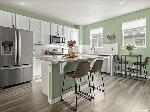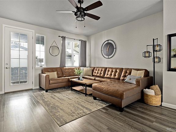 Welcome to this beautiful, contemporary and immaculately maintained townhome nestled in the sought-after Pearson Grove community of Lakewood. As you enter through the front door, you're greeted by a private office (ideal for the comfortable work-from-home setup), a spacious coat closet and access to the 2-car attached garage with ample storage space. The second level is beaming with natural light and boasts an open layout connecting the kitchen to the living area, making it great for entertaining. There are two separate outdoor spaces - the front porch as you enter the home and the second level covered patio. The kitchen features crisp white cabinets with modern black hardware, granite countertops, walk-in pantry, center island w/seating, and stainless-steel appliances, including a gas range. The third level hosts a spacious primary suite with high ceilings, a walk-in closet, and an en suite bathroom featuring a dual vanity. An additional bedroom with an adjacent bathroom ideal for hosting guests or a roommate. This townhouse offers the ideal blend of functionality and luxury with low maintenance. Conveniently located close to mass transit, commuting is a breeze, providing easy access to all downtown and the mountains have to offer!