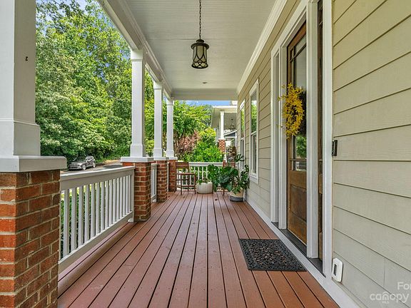 Southern charm personified at this double rocking-chair porch home in the heart of Plaza Midwood. Light filled rooms, designer upgrades, high ceilings with crown molding and an open floor plan are just some of the exquisite details that make this home a stand out. The main level features an open spacious living area and a kitchen perfect for entertaining. A breakfast room, dining room, office and laundry with sink complete the main floor. Head upstairs using an elegant curved staircase to find hallway access to the upper level covered porch. A spacious primary suite includes an ensuite with dual vanities, a soaking tub, oversized tile surround shower with dual heads, and a walk-in closet with custom built-ins. Two additional bedrooms share a full hall bath. Entertain outdoors on your full width deck overlooking plenty of trees with Briar Creek lolling in the background offering plenty of privacy and natural views. Steps away from all of the amenities Plaza Midwood continues to offer.