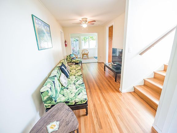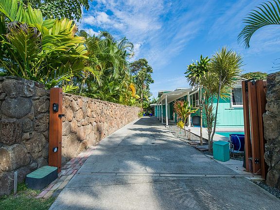 Come enjoy this two story private 3/2 apartment on shared property in a tranquil setting of tropical flowers and fruit trees. Sip coffee or wine while you enjoy the views of the Ko'olau mountains and listen to the birds sing from your covered upstairs lanai. Take a dip and catch some rays in the blue-tiled pool. Rinse the sand from your toes after a stroll on Kailua beach or surf session at Castles surf break, only an 8 minute walk from your door to sand. This property is recently renovated. Downstairs living areas have some attached walls with our home, but are fully private. The two large bedrooms upstairs each have lovely views, private baths, walk in closets and air conditioning. There is an additional bonus room and huge walk in closet upstairs as well. The unit has a full kitchen. There is a shared laundry room with the owners. You will have your own drive with gated parking for several vehicles and private entranceway, all with keypad entry. This gated property has a gorgeous freshwater shared pool for daytime enjoyment. Very short walking distance to Castles beach, restaurants, and grocery store. Easy, flat biking distance to all Kailua/Lanikai region beaches, parks and anywhere in Kailua town. Unit is unfurnished. Lease includes parking for 2 vehicles tandem on private drive behind electric gate. Utilities $300/mo, includes electricity, water, sewage, bug control, pool maintenance, yard maintenance, & state GET tax. EV charging not included. No smoking.