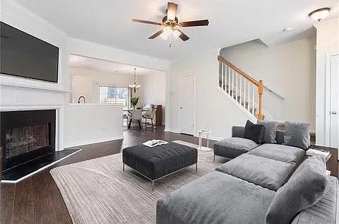 Incredible location! Walk to downtown Alpharetta shops & dining. Perfect roommate floor plan, 2 bedroom, 2.5 bath, end unit town-home. Completely renovated interior w/ hardwood floors on main, newer carpet up & fresh paint throughout. Updated kitchen w/ fresh cabinets, quartz counters & stainless steel appliances. Spacious great room w/ fireplace. 2 spacious suites with private bathrooms and walk-in closets! Great community with fantastic swimming pool. Unbelievably convenient to Avalon, GA400, North-point, Verizon Amphitheater & more! Property comes with 2 numbered parking spots with plenty of guest parking. Small updates have been completed since listing photos. Tours available after 8/16. Washer and dryer can be included for additional cost. Minimum 1yr lease. First month rent due at signing. Rental rate includes water, trash, yard maintenance, and pool access. Renter is responsible for gas and electric. Pets allowed with $500 pet fee. No smoking.