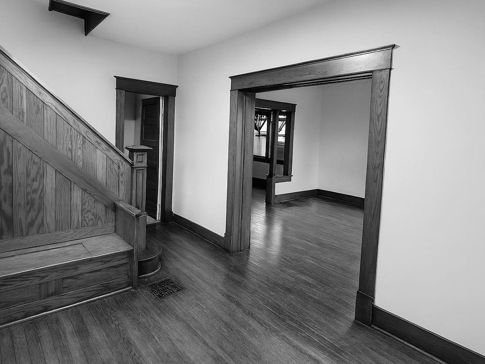 Spacious, lower-level apartment in the heart of Bedford boasting around 1,000 square feet of living space. Stunning original woodwork throughout, antique 10 foot ceilings, several windows provide lots of natural light. Private laundry room/pantry area. Freshly painted home with light renovations throughout (upgraded light fixtures, refinished hardwood floors). Spacious covered front deck. Landlord pays water/sewer/trash. Pets allowed (max 2) with additional fees- restrictions apply.