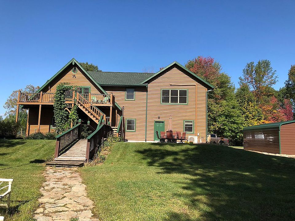 Rustic Custom built log sided home with Amazing view of Big Bass Lake. The backyard features 222' of water frontage and a two tier deck with path that leads to the beautiful lake. This scenic location is currently set up for a small family, offering 2 bedrooms and 2 baths, however has the potential for an addition which seller has the plans for. On the main level you'll find a large workshop which offers 10 ft ceilings and is designed with the possibility of becoming a family room or additional bedrooms.Also on the main level is the 6+ car attached garage, laundry/utility room and full bath with walk-in shower which could be connected to a remodeled living area. 2nd Floor kitchen, living room and 2 bedrooms designed with wood interior. Double patio doors off living room that lead to the large deck. Again this area is designed for future expansion to side or front of home. New septic in 2000 making it compliant for a 4 bedroom home. 65' drilled well, 200 Amp Electrical w/ 12 gauge wiring and 20 amp circuit breakers. High speed internet is also available. With this private 1.8 Acre parcel you'll have plenty of space to entertain or enjoy the tranquil setting to yourself. Big Bass Lake is 177 acres which offers nice clear water and sandy bottom for swimming as well as a variety of fish species. Don't Hesitate...Call to schedule your showing today!