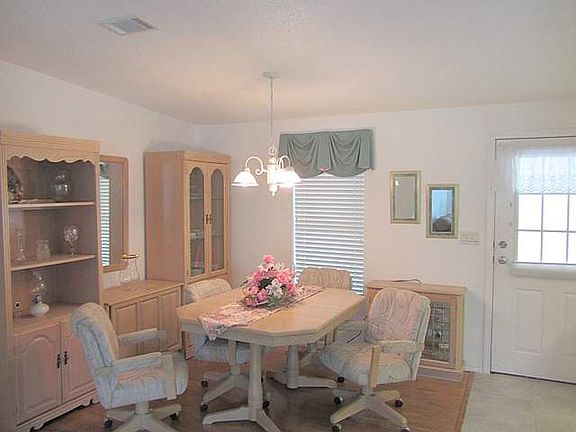 Newer tile flooring in kitchen and dinette area, newer laminate flooring in the dining room and hall, Thermopane windows throughout, newer kitchen cabinets, whole house radio system, tile floors and verticals on the windows in the lanai. This home is very nicely furnished and even has dishes, silverware, pots and pans and extra linens. Extra large 17x25 shed with Golf Cart. Call for more information and move in today. LLSB1449 Over 700 homes available at http://www.fourstarhomes.com
