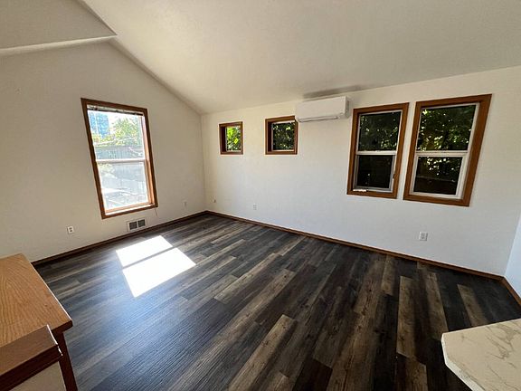 This fantastic 2-bedroom, 1-bath condo-style unit features soaring ceilings and an abundance of natural light thanks to large windows throughout. The updated kitchen offers modern efficient stainless steel appliances and flows seamlessly into the living space-perfect for both relaxing and entertaining. Each of the two spacious bedrooms includes oversized closets, providing plenty of storage. Stylish full bath, with beautiful tile and black accent features. 1 Extra-long single-car garage; one with a washer & dryer, plus a workbench area. Beautiful deck off the living room-great for outdoor enjoyment- along with a small fenced backyard. Prime location just a short distance from the University of Oregon and less than a block from Hot Mama's Wings, with shopping, restaurants and entertainment all nearby. Tenants pay all utilities and garbage. 1 small dog/cat Ok w/$300 addt'l deposit +$25/mo pet rent. Renter's Insurance Required. Dishwasher, Oven, Refrigerator, Air Conditioning, Blinds, Dryer, Vaulted Ceilings, Washer, Deck / Balcony, Fence & Pet Friendly.