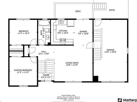 - Master Bedroom Level: Upper