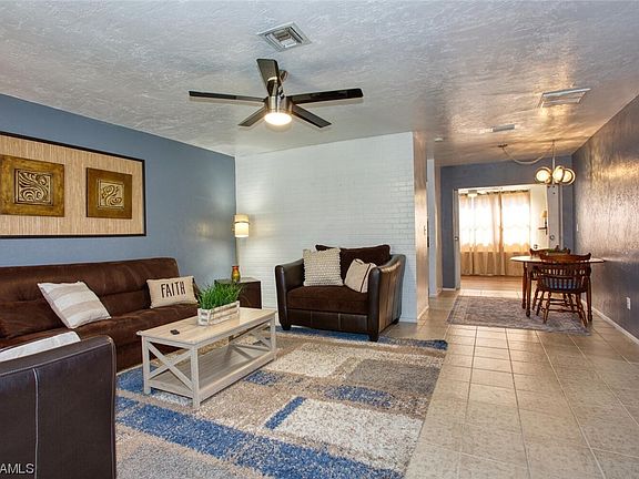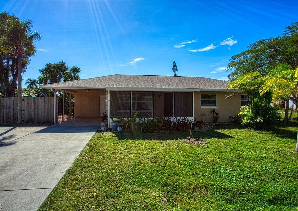 Price Adjustment! Fantastic deal! Won't last long. Easy to show! Welcome to your freshly painted home on a large corner lot in a great location in South Fort Myers! This charming home features 3 bdr and 2 bths plus den and has a fully fenced in backyard, perfect for privacy and outdoor equipment. Additionally, you will find a convenient storage unit with electric hookups, ideal for all your tools and equipment. With an RV hookup on-site, adventure awaits just steps from your doorstep. New roof in June, 2023 and newer AC unit with ductwork. Spacious inside laundry room with ample cabinets. Screened lanai, back porch, and large front porch. Don't miss out on this prime location offering terrific Florida living near restaurants, shopping, health facilities, and only a short drive to the beaches.