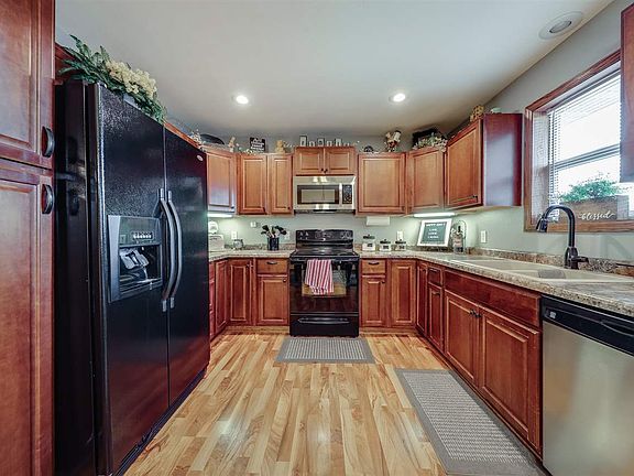 - Kitchen: Electric Range, Dishwasher, Refrigerator, Microwave, Wood, Vinyl