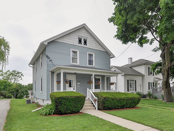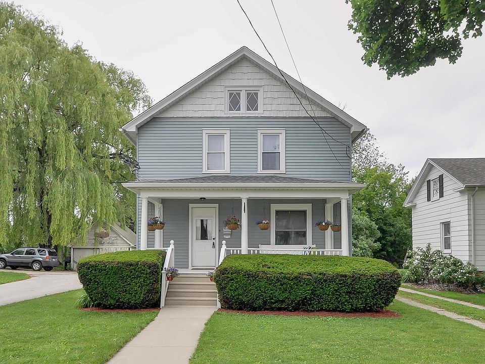 Current owners have captured the character and history of this home while incorporating today's modern conveniences! Striking new kitchen w/soft close drawers/cabinets, under cabinet motion lights, granite CT, walk-in pantry and HWF's throughout! All the bells & whistles with claw foot tub, antique vanities, high tank toilet in half bath, & built-in china cabinet. Relax on the charming front porch or the back enclosed porch with a wall of windows overlooking the large lot with firepit and 2.5 detached garage. Walk to city amenities, parks, library and don't forget the annual parade that passes by your new house! List of updates available under documents tab.