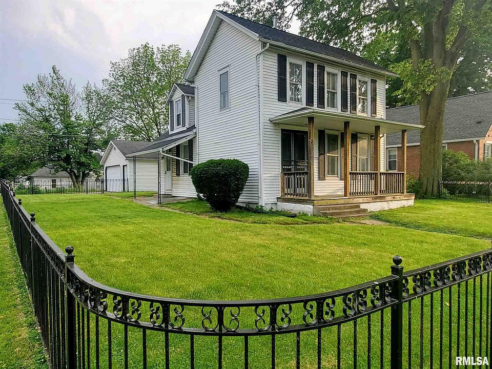 Great curb appeal on this 3 bedroom, 2 full bath 2 story charmer ... Double door entry with beautiful foyer and curved open staircase! Freshly painted and lots of new flooring, central air, electrical service box in 2020, roof shingles and furnace in 2018. Large master bedroom with walk in closet (8 x 8) that could be a bedroom/nursery. Oversized 26 x 24 car garage, nice yard and walk out clean basement is great for storage! Room sizes and sqft. are estimated, not guaranteed to be correct. SQFT. per Tazewell County records.