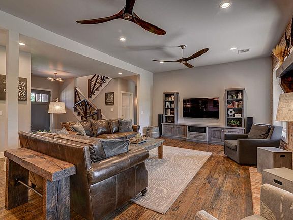 Magnificent, one-of-a-kind property located in a cul-de-sac, on two lots in the exclusive Falls Subdivision. The stunning entryway leads to the tremendous family room featuring a high-end Xtrordinair, wood-burning fireplace surrounded by an amazing, reclaimed brick accented wall. Throughout the home are upscale, Anderson windows and doors, which offer an abundance of natural sunlight and views of the gorgeous nature’s beauty surrounding the home. This masterpiece was built with the integrity and high-quality craftsmanship expected from a Carpenter Construction home. The family room is adjacent to the kitchen to offer the open living concept. The stained, hand-scraped, reclaimed, white oak flooring downstairs are the perfect contrast to the lighter shades of paint featured throughout the home. The kitchen and living room wood trim are Rift Sawn White Oak. The gourmet kitchen includes a walk-in pantry, beautiful quartz countertops with an inset farm house sink, commercial grade stainless appliances including the gas range, double ovens, microwave, dishwasher and the Frigidaire refrigerator and sub-zero, freezer. The large center island has electric outlets, storage, a separate sink, and an eat-in bar stool overhang. The spacious dining room is conveniently located between the kitchen, living room and the exit to the backyard oasis. The split-bedroom arrangement offers two large bedrooms downstairs which each have enormous walk-in closets with built-in dressers. Between the two bedrooms is a Jack and Jill bathroom, including private vanity areas for each bedroom. The cleverly designed master suite has custom barn doors, sconce lighting, plus, includes a private, additional room perfect for an office, work-out room or separate sitting area. The master closets are unique in size and shape as they offer separate dressing are and include built-in dressers. The chic master bathroom has marble countertops, black tile floors, white walls and cabinets, a six-foot free-standing soaker tub, and a walk-in shower that has both a rain shower and a personal shower. Also, downstairs, is the astounding utility/mud room which includes quartz countertops, lockers, cabinets, cubbies, coat closet, large chalk board, and the large, safe room. The enormous three-car garage has a closet under the stairs. Above the garage, is the 594 sq. ft. bonus/flex room. The room is heated and cooled, has LED lighting, is wired for 220 AMP, and stubbed with water options for the addition of a bathroom and/or separate kitchen. On the way upstairs, notice the unique, custom raw-steel railing and accents. Two additional living spaces are included upstairs in addition to the fourth bedroom. The south living space is wired for a theater room and could easily be converted to a fifth bedroom by adding a closet. The inviting middle living space is the perfect place for hanging out, reading, or watching TV. The hallway upstairs is surrounded by closets and storage. The secluded, tree-lined back of the property offers privacy to enjoy the amazing outdoor kitchen which has granite countertops, a Coyote grill, with side burner, a built-in bar/serving/eating area. Other amenities in the back include a brick-surrounded gas fire place, a large covered patio, plus an extra concrete patio “sunning area.” The home has an AMAZING amount of storage and spaces for entertaining guests. Additional features and upgrades include a post-tension slab, spray foam insulation, impact-resistant shingles, triple-zone HVAC units, three wifi hot spot zones, tankless hot water heater and circulation system, floored attic space, commercially designed/installed drainage and irrigation system, fully wired and monitored security system, programmable thermostats (upstairs and downstairs) LED lights throughout the property (interior and exterior). The property is part of a shared driveway and parking spaces in the center island of the cul-de-sac. Minutes from Cimarron Turnpike and Okla. St. Univ.