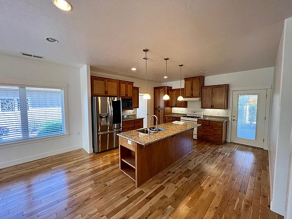 This home has never been a rental before- very clean. Single level, 3 bed, 2 bath home in the Twin Creeks Development. Home has 1671 sqft with an open floor plan. High Living Room ceilings and gorgeous hardwood thru-out living areas and front bedroom/office. Island kitchen with breakfast bar, under cabinet lighting, pantry cabinet, and French door to rear covered patio. Large Utility room with built-in desk, folding counter. Split bedroom plan. Master Bedroom with french door to rear covered patio, walk-in closet. The garage is finished. Owner Pays Landscaping, sewer and HOA Refrigerator, microwave, washer and dryer are included No Smoking/Vaping 2 Pets under 35 lbs. with an additional $700 deposit per pet 1 Year Lease Available: 7.10.25 Rent: $2,550 Deposit: $3,100 Managed by Cornerstone Property Management