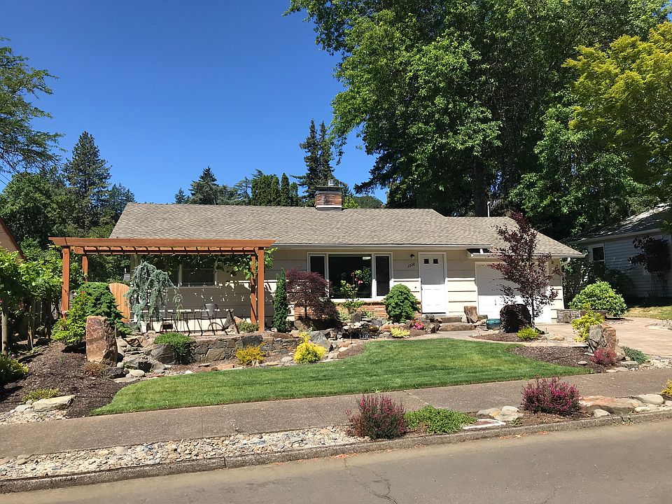 Now showing! Call for appointment. Cozy, well-maintained home on large 0.20 acre lot in quiet, highly desirable Hillcrest neighborhood in NW Corvallis. Many upgrades throughout, including complete kitchen and bathroom remodels, refinished hardwood floors, all-new plumbing and electrical, Marvin double-pane windows, and gas insert fireplace with custom-built mantel. Beautifully landscaped front yard with brick paver driveway, grape-adorned pergola, water feature, decorative outdoor lighting, and automatic sprinkler system. Surprises abound in fully fenced, park-like backyard, including brick-lined patio, heated 'she shed,' 10x8 garden shed, and large raised-bed garden area surrounded by fruit trees (plum, peach, and apple), blueberries, and marionberries. Full-house weatherization project in 2009 included air leak sealing, duct sealing, extra insulation in attic and floor, and new vapor barrier. Owned by just two families in nearly 60 years, home is on market for first time since 1991. Current owners reluctantly forced to move to be closer to businesses in Vancouver, Wash. For sale by owner. Buyer's agents paid by Buyer are welcome.