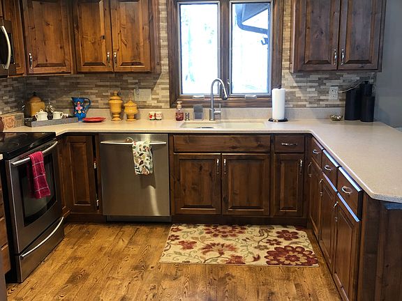 Private well maintained rustic home on wooded (timber) lot. Pella windows; high ceilings; huge Master Suite w/dbl closets & sinks; main flr Laundry Rm, Din Rm opens to 8x16 screened porch & overlooks timber & Soldier Creek bottom; very open floor plan, balcony overlooks main level; Picturesque Setting!!! Every room has been redone--including new hardwood, carpet, kitchen cabinets, stair rail and master bath! Custom built-in shelving in downstairs bed/office. New concrete patio/landscaping outback. Front yard has sprinkler system. A must see!! Oversized garage. w/o basement off/bdrm has egress window. 1 mile to Walmart/Dillons.