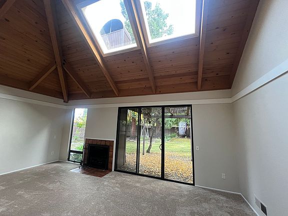 This single level townhome is tucked back in the corner of the Pacific North Community with one of the largest backyards in the community. It features 2 bedrooms and 2 bathrooms, new interior paint and carpet. Sunken living room with fireplace, sliding glass doors to the backyard and high ceilings. There is a formal dining area off the kitchen that leads to another side patio area perfect for entertaining. The kitchen features a gas cooktop, wall oven, new dishwasher and refrigerator (provided but not warranted). One of the bedrooms is located towards the front of the home and features a wall of custom built in cabinetry. There is a full hallway bathroom with tub/shower combo. The primary bedroom which is located towards the back of the home features a sliding glass door to the backyard and a large primary bathroom with double vanity, soaking tub and separate standup shower. Washer and dryer hook up's. Forced heat and A/C. Attached 2 car garage. Community features a pool, spa and tennis court. HOA is responsible for the front yard maintenance. Landscape service provided for back yard. Sorry, no pets or co-signers. 1 Year lease. (MT)
