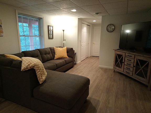 Apartment has 1 very large master bedroom, living room, open kitchen, full bath with shower and tub, washer and dryer in apartment, private off-street driveway/entrance in a quiet neighborhood, and a bonus room. Multiple large closets and full kitchen with tons of cabinet space. Tenant pays electric and cable. Large screen TV and Internet included in lease. Central A/C and heating. Very close to east side of campus and downtown (Centre Hills near Lemont). Ideal location to access all of State College and jump on Rte. 322 for easy travel. Perfect for those just moving into town and looking for a comfortable home away from home. Review from tenant: "The location is easy to get to, situated convenient to Penn State and amenities like gas, food, shopping and yet it is quiet and peaceful. The apt. is spacious, the furnishings are comfortable and the landlords are absolutely wonderful. Would highly recommend this place for short term or long term rental. Five stars Owner pays Internet, Water, Sewer, Refuse. Tenant pays Electric for appliances and supplemental baseboard heating, if needed (otherwise, central A/C and heating is included in rent). Furniture included in rent, if desired.