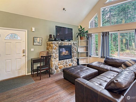 Timeless cedar chalet in Sun Country golf community! Main floor features soaring ceilings, tons of natural light, wrought iron stair rail, river rock fireplace, 2 bedrooms, and 1 full bath. Open concept kitchen with granite tile counters, and plenty of cabinet storage. Large sleeping loft upstairs with full bathroom, overlooking great room with picturesque windows. Lower-level recreational space with built in bunk room and access to back deck and privacy hot tub area. Ready for a full-time residence, vacation home or investment property. 2 car garage, and ample storage in out building. Easy year-round access. Close to community beach & John Wayne trail. 3 miles from Suncadia and 1 hour from Seattle.