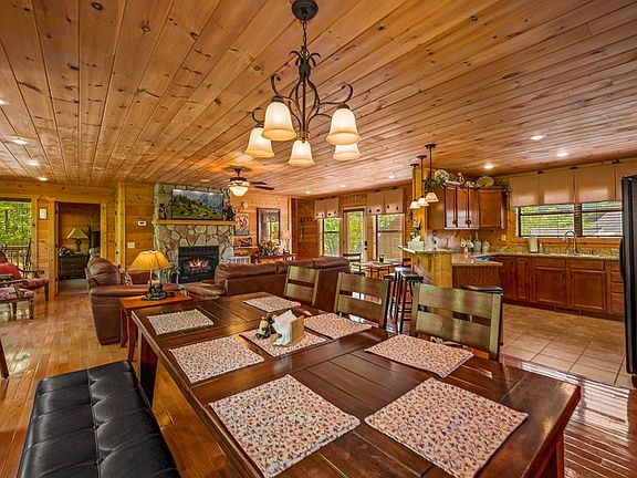 Beautiful cabin that exudes comfort and style. This lovely 3 bedroom/ 3bath in Parkside Resort is situated on a private lot and features everything you could need for low maintenance living in a secure gated development.Enter this cabin from the level parking area with no front entrance steps to navigate, and you will be enchanted as soon as you step inside the front door. All tongue and groove construction throughout with a stone fireplace, fully equipped kitchen with Granite countertops and tile flooring, gleaming hardwoods and spacious main level king master suite with private bath. Upstairs there are two spacious bedroom suites with vaulted ceilings and exposed beams. A bright and airy lounge with a pool table area with lots of windows and deck access, a theater room with stadium seating and large 9' screen. Sit on the deck and soak in the sights and sounds of nature, or take in the resorts amenities. Including a outdoor pool and indoor pool, mountain mini golf, nature trails and much more.This is a must see property if you are looking for luxury and low maintenance in the mountains.