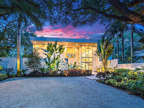 This stunning 2006 renovated and extensively expanded modern residence is located on Siesta Key in the very private enclave of Point Crisp. This property sits gracefully amidst lush tropical landscaping on the banks of Little Sarasota Bay, along with its own private boat dock and lift. The tranquil blue waters and natural landscape provide an incredible backdrop for the contrasting white modern home, while two-story sliding glass doors, windows, and open terraces combine to deliver amazing water views and the perfect setting for true Florida indoor/outdoor living. Polished concrete floors, sleek metal railings, custom cabinetry, and an open floor plan work together to create a stunning and functional feel throughout. The kitchen, completely open to the dining and living room, boasts a large rectangular island with seating, granite countertops, abundant storage, and top-of-the-line stainless steel appliances. The family room provides a more intimate setting and includes a separate space that could be used for a workout area. The spa-like master suite features an amazing private waterfront terrace. The upper level also includes a dramatic open loft/office area and an en-suite bedroom, both capturing stunning bay views. There are two bedrooms and bathrooms on the first floor, as well as a large laundry room and a utility room. The outdoor space boasts a new beautiful Marbelite pool deck, pool, and a large private backyard. There is a fully equipped boat dock with a 10,000 lb. boat lift with direct access to the Intracoastal Waterway. All this within minutes of Siesta Key Beach and Village with quick access on and off the island. See Matterport link for 360 view of each room.