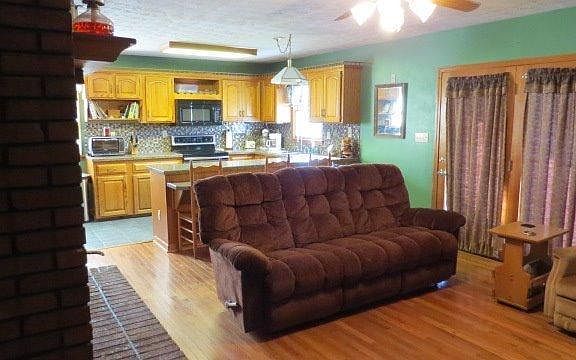 Horses Welcome and so are you! Such a convenient location to most everything including the Blue Grass Parkway, be to west side of Lexington on 20 minutes. This warm comfortable ranch features hardwood & ceramic tile flooring throughout, very spacious kitchen w/loads of counter space, pull out draws in cabinets & a set down bar that connect to the family room with a real working brick fireplace. You will find a living room and dining room so there is plenty of space to spread out. Three bedrooms and two full baths round out the main floor. The lower level supports a possible fourth bedroom, utility room includes full bath (shower) nice area from workshop and two car garage. Covered front and back porches are there for your enjoyment. Along with a shared pond, where is a spring and stream in the paddock area to left of home with run-in-shed and plenty of front yard for outside fun. Call to schedule your showing, need some notice. Enjoy country living while almost being in town.