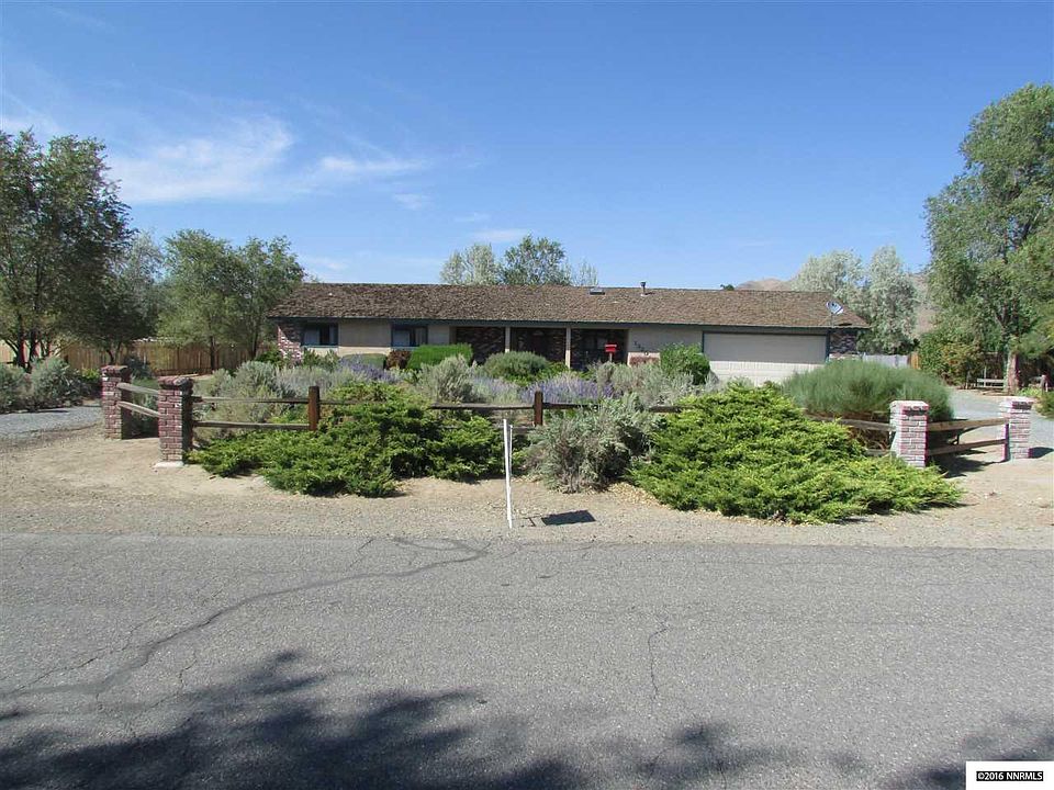 Ranch style stucco 3 bedroom home on one full acre with extra garage/shop to the rear of the lot. High open beam ceiling in living room as well as woodburning stove on used brick hearth. Dining room has French doors to covered patio. Backyard is fenced and cross fenced leaving about 1/2 acre for horses, shop, RV, etc. Attached garage has plenty of room for workbench and toys. There is a double gate for easy access to the back and detached garage as well.