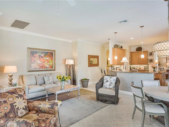 Exceptionally well appointed Coach Home, ideally located in North Naples only minutes from the Gulf of Mexico beaches, large array of restaurants and shopping areas including Waterside Shoppes and Mercato. This elegant and spacious home has 3 bedrooms, 2 full bathrooms and includes many upgraded design features. Gourmet kitchen with large center island, breakfast bar, stainless steel appliances, wood cabinets, granite counter tops, tile back splash and large pantry. Crown moldings throughout, lighted tray ceiling in master suite, plantation shutters, window casings and impact resistant doors and windows. The spacious Master Suite features his and hers walk-in closets, private bath with dual raised vanities, granite counter tops, wood cabinets and walk-in shower and jetted tub. Amenities include a private Clubhouse with catering kitchen, outdoor grilling area, fitness center and resort style heated pool and spa. Call today for a private showing.