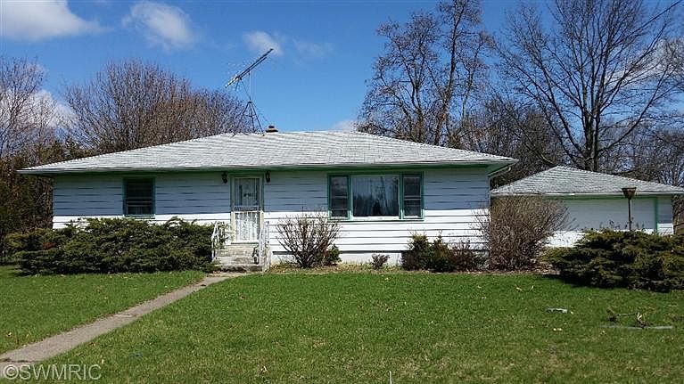 For details and more pictures, call listing Agent: Ruth Scott at 269-506-0577. St. Joseph Riverfront home features 120 feet private frontage, 1.56 acres, large barn by river, screen house, 1232 SF ranch home, and 2 car garage. Home offers spacious rooms, 2 bedrooms, large living room open to dining room open to kitchen, full basement for you to finish, Natural gas heat/central air, city utilities. Plastered walls. All for the price of $79,900. House and garage in good condition. Screen house and barn need some repairs. Priced well below State Equalized Value.