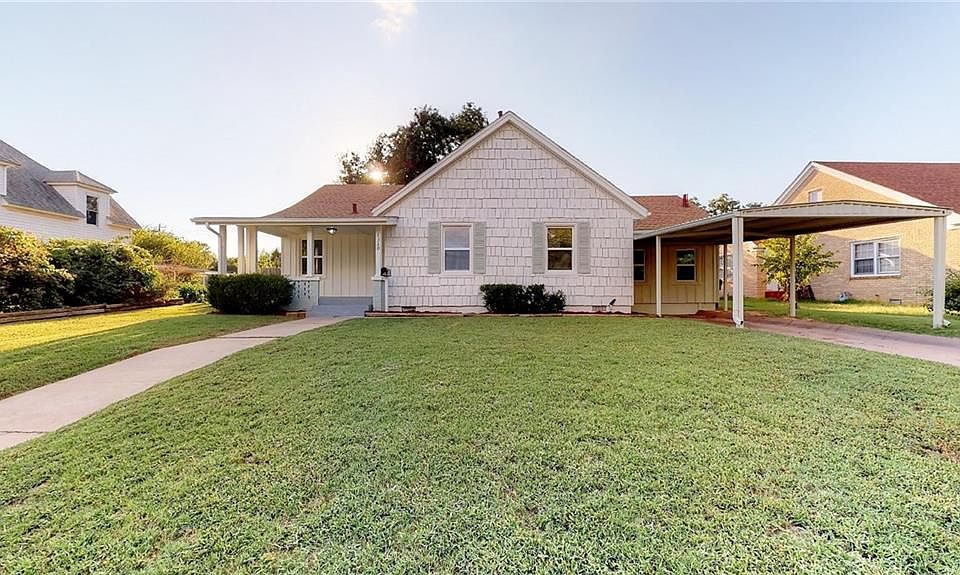 This 1950's home sits on 1/4 acre and has been updated to reflect today's trends while keeping elements of its original charm. The updated flooring includes 12mm laminate flooring, carpeting in the bedrooms and tile in the bath and laundry. New energy-efficient windows have been installed all around. The spacious kitchen features on-trend backsplash and granite countertops and 2 pantries. The Master bedroom now features a private bath and an expanded closet. The huge backyard includes a covered porch and 2 open decks. You love the size of both the laundry and the storm shelter!!!