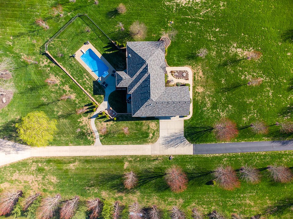 Stunning All brick home on 4.3 park-like acres. Entering this beautiful home, you are greeted with real wood floors, soaring wood beam accented vaulted ceilings, elegant formal dining, stone faced wood burning fireplace, and windows galore for all the natural light. The large living area opens to the kitchen/dining that offers loads of cabinet space, granite counter tops, matching appliances, and a huge walk-in pantry. Plus, it opens to your large covered deck that overlooks this amazing property.On the main floor you will find the oversized master bedroom with deck access, private ensuite featuring His/Her vanities, large walk-in shower with double shower heads and body jets, plus a fabulous walk-in closet. Across from the master is a large laundry room. There is a half bath, plus two more great sized bedrooms and jack/jill bath finish out this split floor plan upstairs. This walkout basement home is hangout central with a massive second living room, another fireplace(gas), wet bar, two more bedrooms with jack/jill bath, workout room, another half bath, plus the John Deere room. Outside is where you will want to live...whether the kids are running around in your fenced back yard, playing in the playhouse/playground, jumping off the diving board in your private salt water pool or maybe you all want to grill out on your private dock , anyway you go this is paradise!For the person looking for garage space, you have found it! The home features a nice 3 car garage but if you need more space there is a 40x100 shop with 40x60 with concrete floors and it's heated. Two 12x12 & one 12x14ft garage doors can handle anything you would want to put inside plus there is another 40ft of covered area. This immaculately cared for home is located at the end of a quiet dead-end road. Some recent updates include: a new roof, new pool liner in 2020, and 2 new water heaters in 2021.