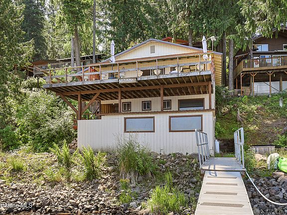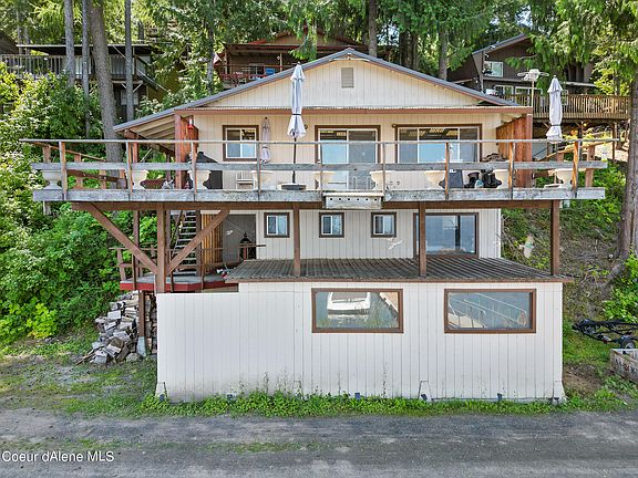 Don't miss your chance to own a waterfront home on Lake Coeur d'Alene for your personal enjoyment. This multilevel 2 bedroom 1 bath home has most of the remodel work done for you. New flooring, newly remodeled kitchen and stainless steel appliances. The main living area has also been updated with a beautiful stone fireplace, bar area with live edge wood counters. Walk out your deck that is perfect for entertaining and enjoy the panoramic lake and mountain views! Private beach with swim up dock available for Shoreland home owners as well as beach fire pit and gathering area. Boat slip is also available for boats up to 24 feet for only $200 a year.
