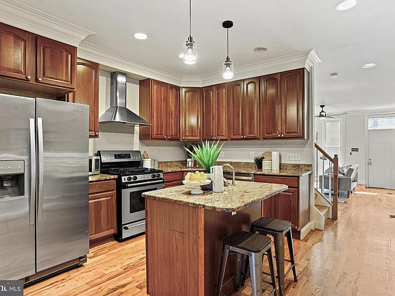 Welcome to 1320 South Hanover Street, a charming and stylish home nestled in the heart of historic Federal Hill. This beautifully maintained property with a two car parking pad,offers a perfect blend of modern amenities and historic charm. As you step inside, you'll be greeted by the warm ambiance of exposed brick walls, crown molding and hardwood flooring that adds character and a touch of elegance to the living space. The Gourmet kitchen with a breakfast bar features granite counters, stainless steel appliances, stainless-steel range hood and gas cooking. The elegant Dining room with wainscoting, a half bath and access to the rear parking pad are additional convenient features of the Main level. Continue to the first upper level to find two spacious bedrooms. The Primary bedroom with ensuite bath enjoys a soaking tub. The second upper level boasts another bedroom, a full bath and a wet bar located just inside the rooftop deck access door, perfect for entertaining guests. One of the standout features of this property is the two-tiered deck, offering ample outdoor space for relaxation, dining, and entertaining. Whether you're hosting a summer barbecue or simply enjoying a morning coffee, this deck is sure to become your favorite spot. The location of this home is truly unbeatable in Federal Hill’s historic district with parks, bars, and dining. Outdoor lovers will appreciate the proximity to several beautiful parks, including Federal Hill Park, where you can enjoy walking and scenic views. This home is not just a place to live, but a lifestyle. With its prime location, modern amenities, and historic charm, 1320 South Hanover Street is a rare find! Don’t miss the opportunity to make this exceptional property your new home. Schedule a viewing today and experience all that this wonderful home has to offer!
