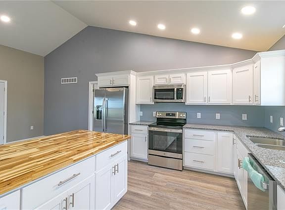 Back on the market. No fault of the seller. Contingency fell through. Your gorgeous, brand-new home awaits you. This 3 bedroom, 2 bath home on a full basement has everything you could want in a home. Large open concept living room/dining room/kitchen boasts a cathedral ceiling, beautiful flooring, gorgeous custom-built cabinets with soft close doors and drawers, granite counter tops and a beautiful, large island with stunning butcherblock countertop. Garage has an epoxy floor and plenty of space for your car, mower, tools etc. Master bedroom has large walk-in closet and master bath as well. The other two bedrooms and bathroom are on the opposite end of the house. Laundry is on the main floor for convenience. Full, unfinished basement that has a sump pump and an egress window already installed in case you want to finish it out and add a bedroom. The front of the house has a cute front porch for coffee drinking and decorating and out the back door is a wood deck, great for grilling and entertaining. Make your appointment today to go take a look.