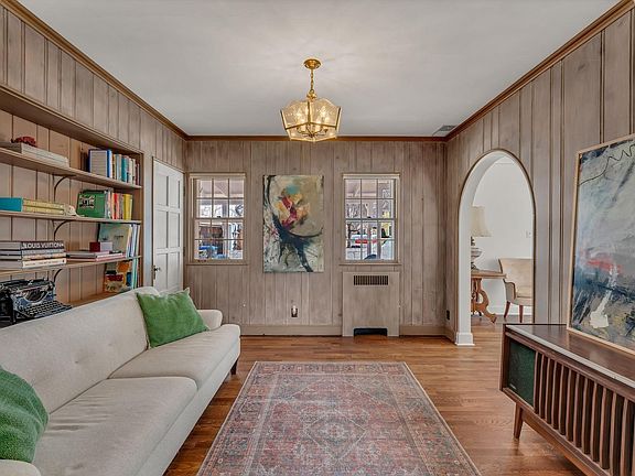 Stunning traditional Westboro home situated on a prominent corner lot. Elegant iron railings accent the home’s distinguished architecture. This lovingly preserved beauty accentuates original interior features, notably, gorgeous arched entries into living spaces, a barrel ceiling in the entry, built-in glass cabinet in the dining room, base and crown moldings, newly restored oak flooring, and a kitchen remodeled in 2023. Multi-paned windows allow natural light to flood the home and French doors lead to the large terrace ready for entertaining. This 5 bedroom, 2.5 bath features a formal dining room, library, large living room on the first floor and a finished basement living room, workshop, and spacious unfinished laundry room and storage area. This distinctive home is listed on the National Register of Historic Places. Westboro is included in a Conservation District.
