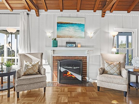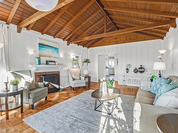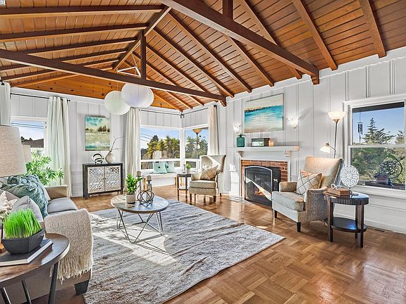 Welcome home! Your search ends here with this cute-as-a button Bay-O-Vista split-level charmer. Featuring 2 BR, 2 BA, 1,385 sq ft of wonderful living space, 2 car garage and absolutely breathtaking grounds on a corner lot. Boho meets elegance, a cozy fireplace, exposed beams, redwood paneling and a spectacular sunset view from your very own living room will certainly make it a favorite room of the house! Experience a magical urban farm with everything from zucchini and chard to blueberries and apricot. Witness it come to life every evening with an abundance of fairy lights, a glowing chandelier and a serene fountain that will certainly "WOW" you. A must see! Entertain and enjoy dinner parties in your backyard patio. Fresh interior and exterior porch paint, 2-year-old roof with 50-year transferable warranty, foundation seismic retrofitting, 180-degree views, mature trees, hardwood flooring, energy efficient dual pane windows, central heating, eat-in kitchen, stainless steel appliances, spacious bedrooms, cedar lined closets, a bonus room perfect for an office and so much more!