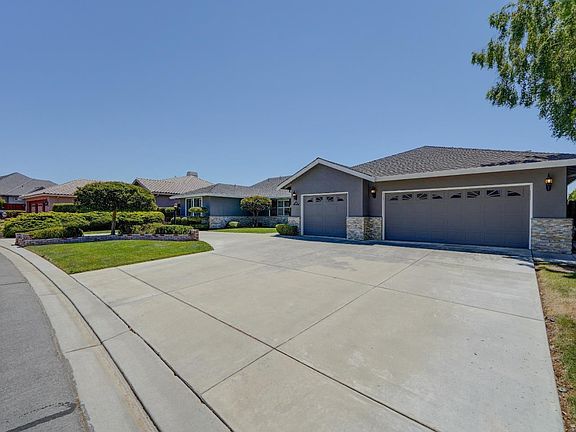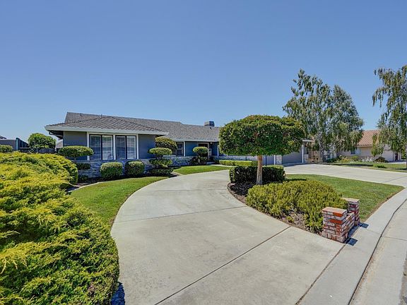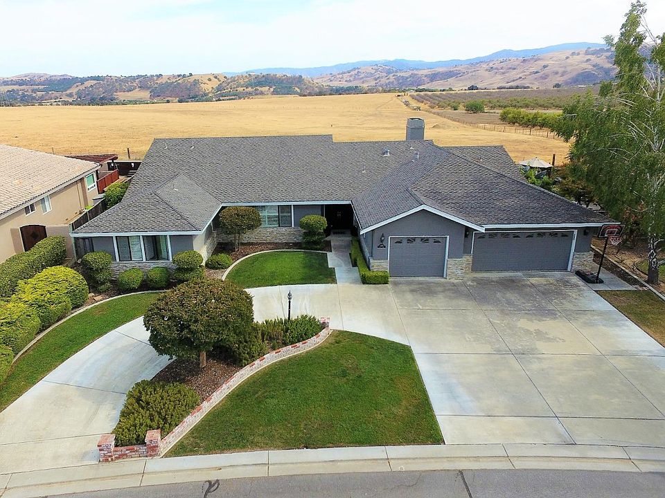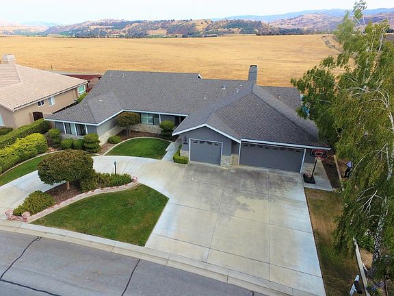 Don't miss this stunning, custom, one-story home in the Ridgemark Estates Golf Course Community of Hollister! This beautiful 4 BD/3.5 BA home includes 2900+ SQ FT of living space, completely remodeled and move-in ready. Set back from the street with a circular driveway and 3-car garage, the double-door entrance opens to a large travertine-finished foyer providing access to all the main living spaces of the home. The open concept kitchen, dining nook, and family room provide the perfect space for family living and entertaining. The modern, gourmet kitchen has grey painted cabinets, granite countertops, and wine fridge. The family room has an exquisite open beam vaulted ceiling, Carmel stone fireplace, and built-in bookshelves. All bathrooms have been remodeled with custom vanities and stone/tile work. Expansive master suite. Plantation shutters and crown molding throughout. The professionally landscaped backyard with pool, built-in barbecue, & stunning views completes this perfect home!