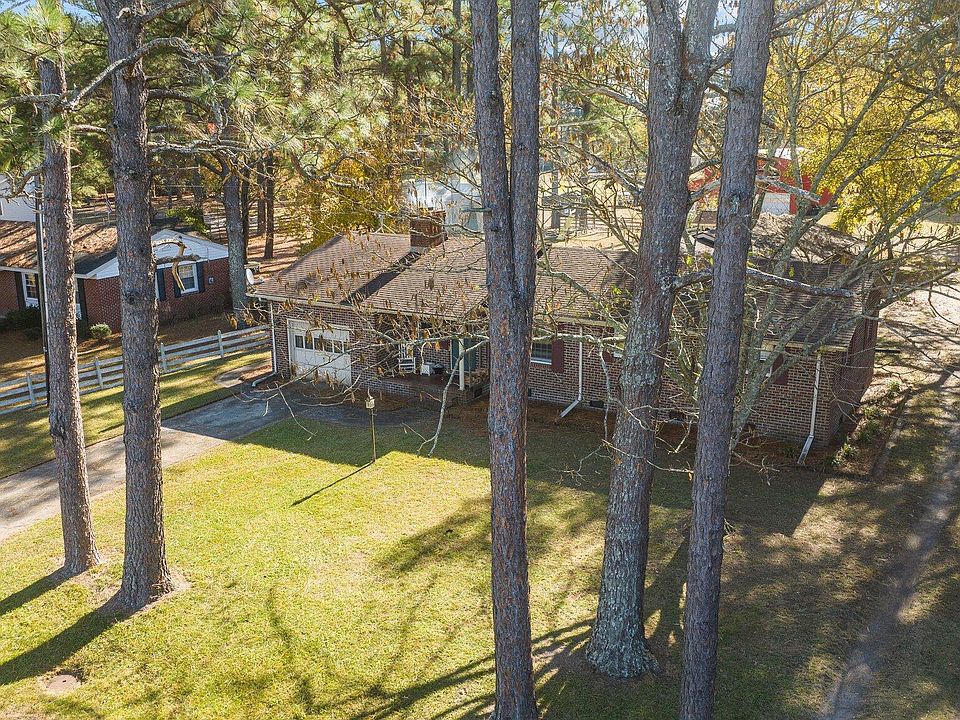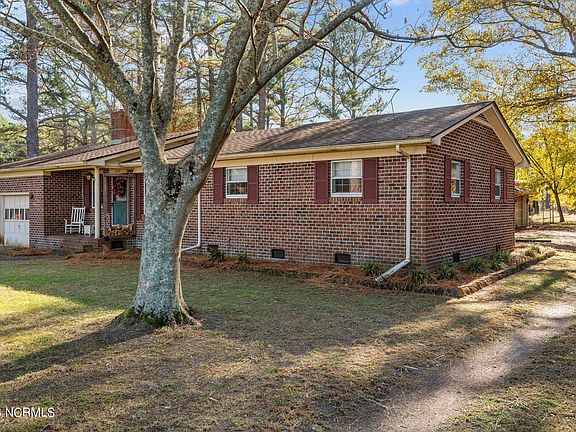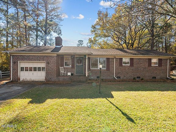 Cozy, brick home on 2 wooded acres in a quiet, country setting in Eure, NC with enough space to add a second home. No restrictions make this an ideal place for animals, a barn, and a workshop.This wonderful home has provided a lifetime for memories for the current owners and now it's time for you to make this home your own! The house has 2 bedrooms and 2 bathrooms. The sunroom is currently being used as a third bedroom and has air and heat. The master bedroom has a spacious walk-in closet. There is a sizeable pantry off the dining room and kitchen. A huge covered and screened patio off the kitchen provides the perfect place for family gatherings and events. You'll find yourself spending countless hours there making many memories.