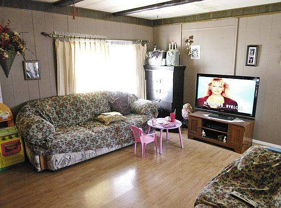 Brand New forced air gas heater and A/C unit(2012), 2 years new water heater, Newer stove hood, Newer pergo flooring, Newer plumbing fixtures in baths. Fridge, Washer and Dryer included. Tile flooring. Gas range. Good sized fenced yard. Close to shopping and freeway access. Monthly lot lease includes water, sewer, and trash. BTVA.Directions: Midland/Flamingo > W on Flamingo to park entrance on right > go past manager house to end of street