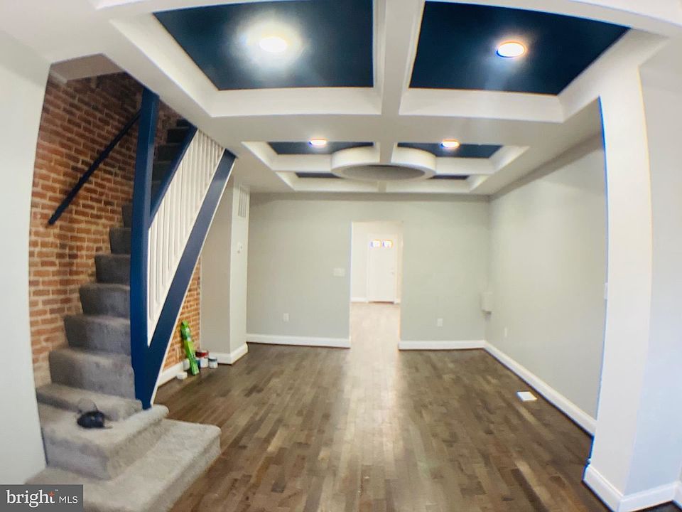FULLY RENOVATED all brick home in the Union Square/Hollins Market Community! This large 3 level home w/ full basement has a contemporary twist with its, exposed brick walls, cathedral ceilings, skylights, and its 3 level open riser stair system & 1/2 bath on the main level. Coffered Ceiling in the family room w/Large modern kitchen. Only 2 blocks away from the shopping center. Close to Univ. of Balt./Downtown and Stadiums. MUST SEE!!