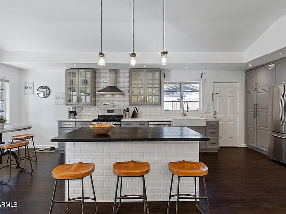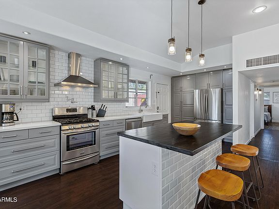 Adorable remodeled 3 bedrrom/2 bath home in this quiet Central North Phx on a large irrigated lot! No HOA!! Tucked in location in the neighborhood too! Perfect VRBO or AirB & B property for the savvy investor! Remodeled kitchen & bathrooms make this beauty truly move in ready! Light, bright & airy white/gray kitchen w/ island & eating area give this home a very on-trend feel & look! Spacious great room is perfect for everyday living & entertaining friends! Primary bedroom is ensuite & spacious! The other 2 bedrooms share the remodeled hall bath. Over-sized green grassy backyard is wonderful for quiet family living & entertaining w/ the ramada set amongst the trees!