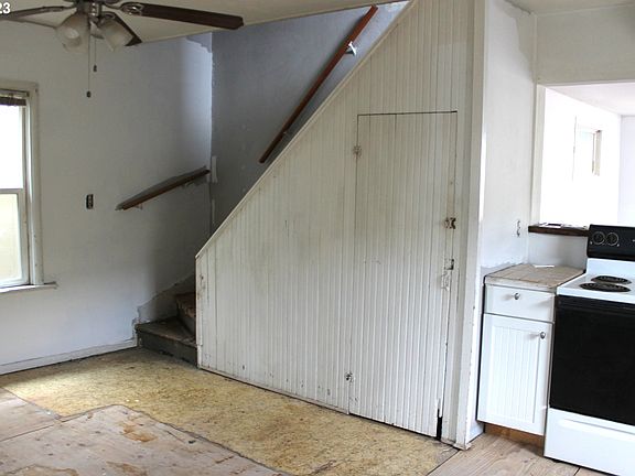 Cute bungalow with 2 storage sheds! 3 bedrooms upstairs and 1 bedroom and bathroom on the main floor. Needs work for financing - paint, flooring and heating system.