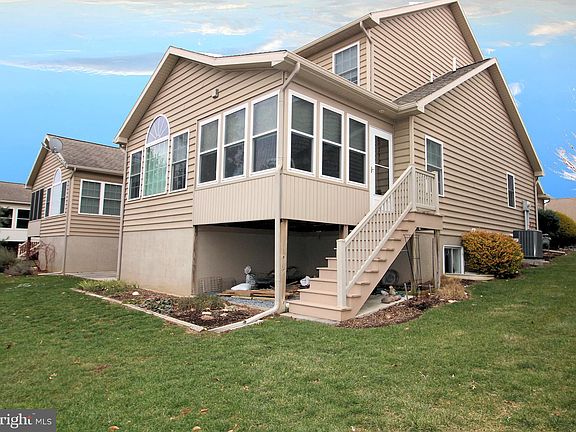 Step into the inviting Dombach Built Home, where you'll be welcomed by a stunning two-story foyer and a spacious living room with a lovely loft view. The first floor features a bedroom, bathroom, and laundry, making everything easily accessible. The combination kitchen boasts quality cabinetry and a cozy eat-in dining area. You’ll love the bright sunroom with its cathedral ceiling, leading to a charming screened porch, perfect for relaxation. Venture upstairs to find the loft, two roomy bedrooms, a full bath, and a versatile bonus room. The full concrete walk-out basement offers ample storage for all your needs. Plus, there's a two-car garage to keep your vehicles snow-free during winter. Located conveniently in Mount Joy, just a short distance from town, shopping center and 283, this home is part of an HOA that covers mowing, snow removal, and exterior maintenance—making your life that much easier. Don’t miss out on this perfect blend of comfort and convenience! To view all photos and a full 360-degree virtual tour of this home, click on the camera icon. Immerse yourself in a virtual reality experience by using a VR headset and accessing the Kuula 360-degree spherical tour link. For a walkthrough video, simply search the property address on YouTube.