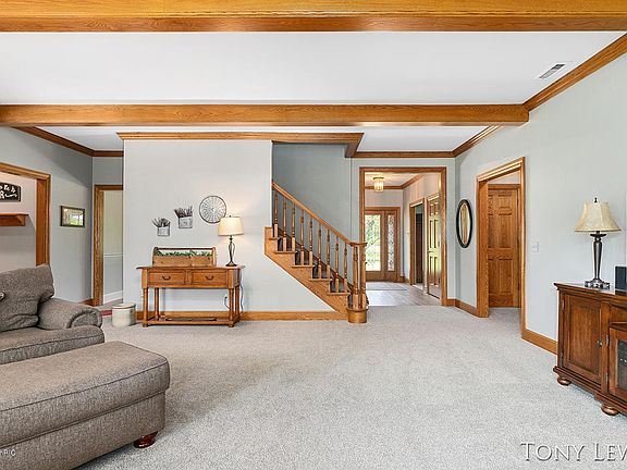 Award winning Caledonia schools! 18.45 acre estate with gorgeous view of winding Tyler Creek w/ 1775' frontage, lots of wildlife including deer, bald eagles, cranes, trout, turkey and etc. 1/4 mile +/- track for running. 20x40 fenced & heated in ground pool. Barn has bath and used for pool house. Endless memories to come & possibilities (graduation parties, showers, banquet parties, wedding venue, etc) 2 paved drives lead to 2 large out buildings. 2005 approx. 48'x80' w/ 12' high doors, heated, bath, cement floor, water. Separate electric 2nd building approx. 32'x48' w/ cement floor, 10' ceilings, loft and bath. 7600 square feet per appraisal with separate guest quarters: separate entrance, br, ba, gr (sunroom) office area, & loft. Main floor master bedroom w/ 2 walk in closets newly remodeled pvt bath w/ new tile shower and new soaker tub. Gorgeous views of property and creek. 2nd pvt jr suite upstairs. Newly remodeled kitchen w/ new center isle, new well-designed layout, new stainless-steel appliances. Quartz countertops. New doors and drawers. Large finished walkout level w/ kitchenette, office area, 2 separate living areas, built ins. 125k professional remodel & update finished by long time custom home builder. Mainly redone, 9 zone UG sprinkling from creek. Large composite deck. Vaulted ceilings, crown molding & hardwood floors, home stereo. Amazing opportunity and very accessible being less than 30 min to GR and less than 60 to Lansing. Whole house generator included. https://www.youtube.com/watch?v=FwH7DqhGDQI Room desc: Foyer, LR, FDR, FR MBR SUITE, KIT, DA, SUNROOM, BR, BA, OFFICE AREA, MFU, MUDROOM, 1/2 BA, UP: LOFT AREA, 3 BR, BA, 2ND BR SUITE, W/O 2ND FR, REC ROOM, 2nd GR, KITCHENNTE, OFFICE AREA, BA, MECHANICALS, STORAGE