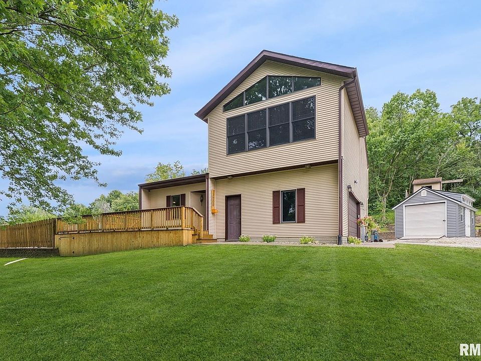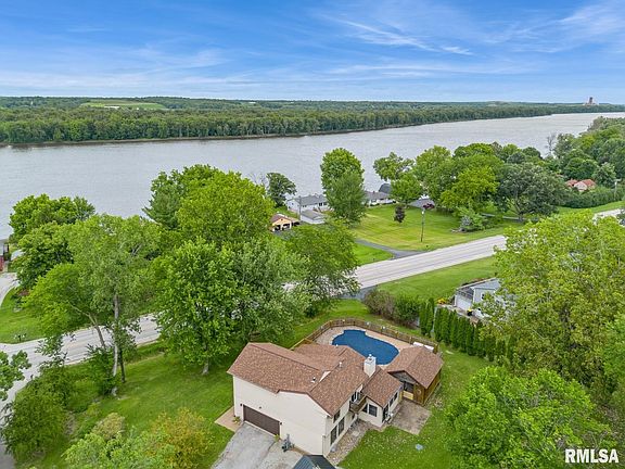 Situated on almost one acre with scenic views of the Mississippi River, this Taylor Ridge Home has so much to offer! Large open living and dining room with gas fireplace and doors to your outdoor living space. The outdoor space makes entertaining a dream with an inground pool, new hot tub, and a pool shack with running water and bathroom. The main level primary bedroom has a full bath and large closets. The great room, on the second floor, is beautiful with its wall of windows. The two other bedrooms are on the second floor, one of which has a Juliet balcony. The finished basement has a large rec room and a separate room that could be used as an office or workout room. Enjoy your low energy costs as the home is equipped with geothermal heating and cooling!Mechanicals for house and pool have been serviced regularly and service records are available. There is a shared well agreement with neighbors to the west. Pool was not opened this year due to owners no longer living on property. It has been professionally opened, closed, and maintained yearly. This home has had many recent updates/upgrades: New roof (24), solid surface kitchen counters (24), 2 new water heaters(22), carpet (24), interior paint (24), large shed (22), flooring (24), hot tub (22), unhealthy tree removal (23), pool filter and chlorinator (23), geothermal motor (22), trim in basement (24) All appliances stay. All tvs stay. John Deere mower with plow, mulcher and trailer are negotiable
