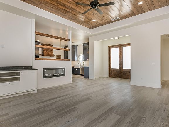 Looking for a stunning contemporary with great farmhouse touches on 1.23 acres?? This is the house. Stunning views from a private master suite balcony featuring a drink bar. Isolated master bedroom has 25' ceilings and a remarkable on suite! Double vanities, large walk in shower, and open linen storage surround a beautiful freestanding copper tub! Kids wing features 2 bedrooms, a large full bath, and a great bonus room for a play space. Built in desk perfect for home work or creating! Fourth bedroom is isolated and offers an attached bathroom. Great for guest or even a wonderful office! Kitchen dining area offers stunning touches such as a great island for setting and tons of natural light. Foam insulation and a sprinkler system are other features included!