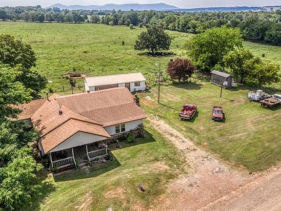 Located in the valley of Hwy. 378 with beautiful views of Poteau Mountain is this cute farmhouse and 57 acres plus or minus of pasture land. Enjoy your privacy while riding your ATV or fishing in one of the three ponds. If you enjoy gardening you have two wells on the property.