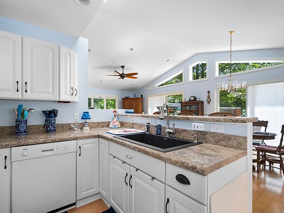 The perfect up north cottage! Enjoy main floor living in this ranch style home with 3 beds and 3 full baths located across the street from Bear Lake, with public access just down the road! Step in to an open floor plan with vaulted ceilings and a wall of windows featuring peekaboo views of Bear Lake. Two bedrooms and 2 baths on the main floor, with maple hardwood floors throughout, spacious walk-in closets and laundry in the closet hallway. Sliding glass doors in the living room walk out to a brand new deck with awning on the front of the house, and the master bedroom features a small private deck for morning coffee. Enjoy peace of mind with the fenced backyard and the quiet dead-end paved street. Full finished basement w/ a large third bedroom w/ egress and an attached bath.